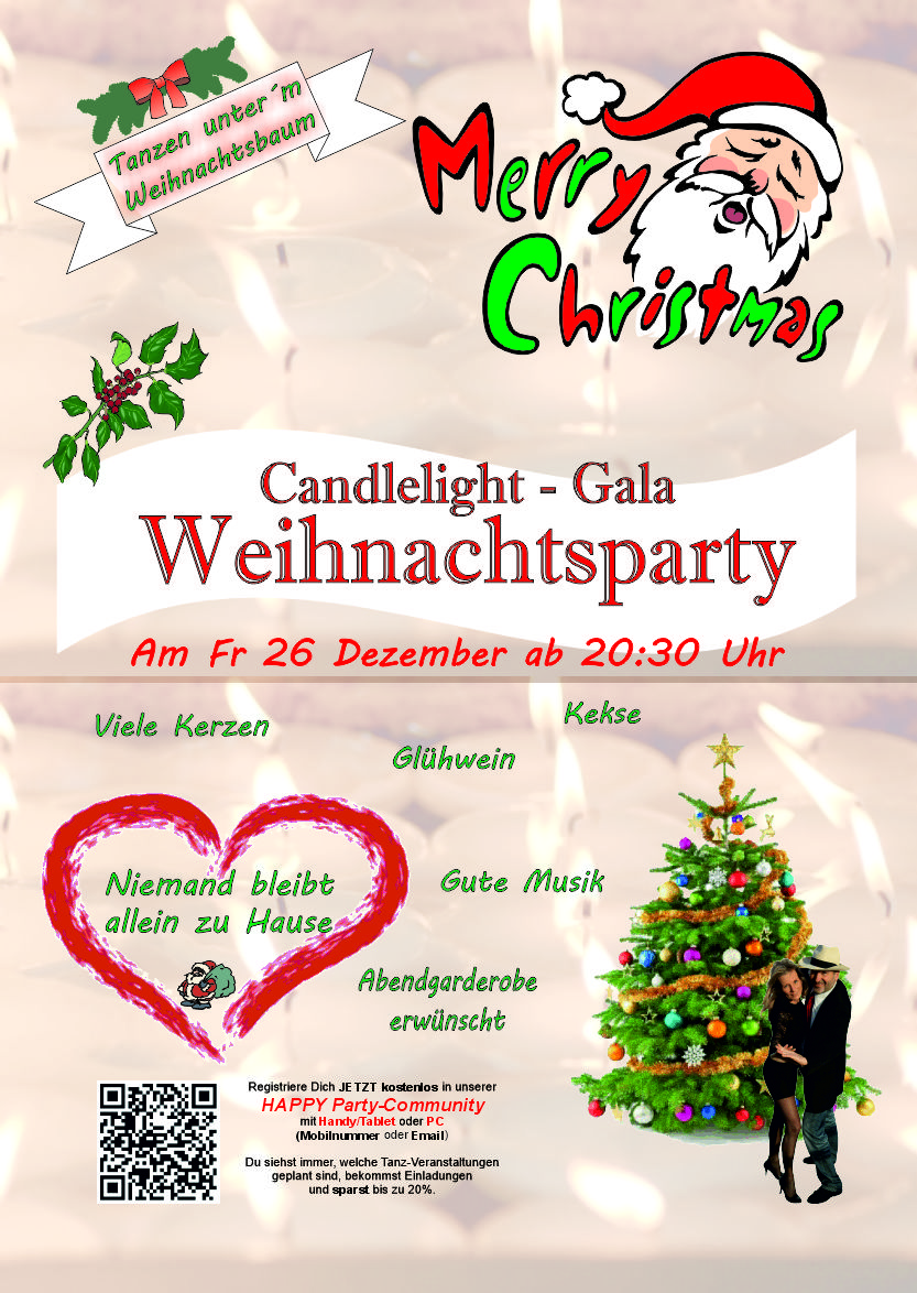 Freu dich auf einen besonders stimmungsvollen Tanzabend in weihnachtlicher Atmosphäre! Viele Gäste kommen festlich gekleidet – eine wunderbare Gelegenheit, die elegante Abendgarderobe auszuführen, die man nicht jedes Wochenende trägt.